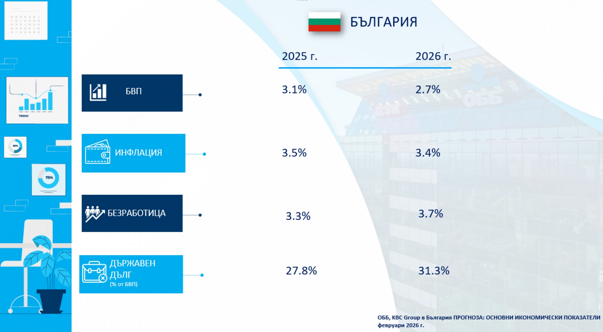 Анализирайки последните данни на НСИ, ОББ коментира ключови тенденции в икономиката на страната